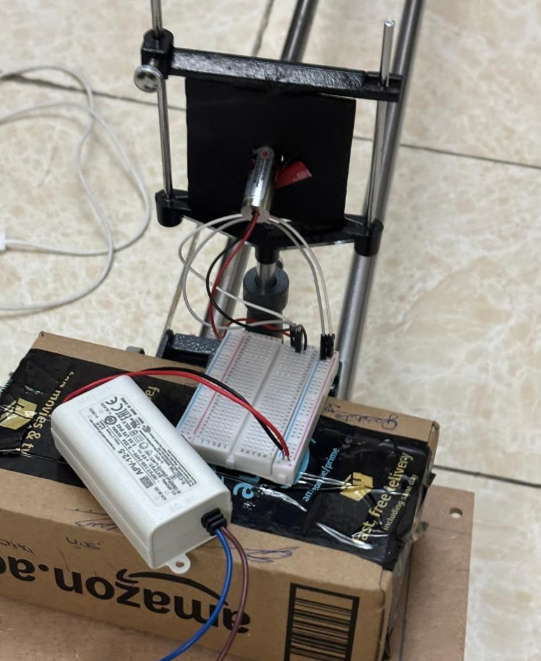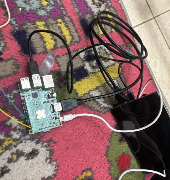 In this image we can see a breadboard, and a raspberry Pi, I connected the Raspberry Pi’s power supply to the breadboard.